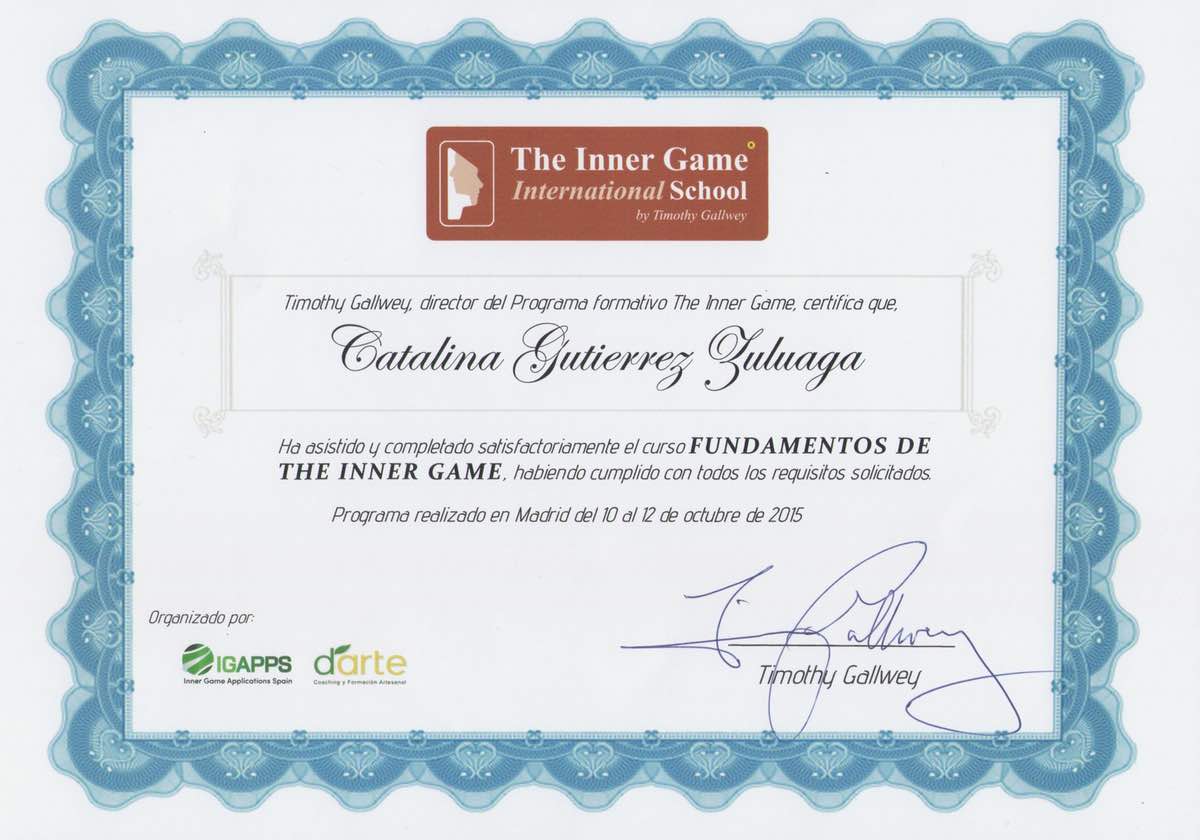 Coach profesional de NCI. Este diploma pertenece al curso que realicé con NCI. Es el único curso que he realizado, hasta el momento, vía online, con clases en vivo cada semana durante más de dos años con participantes de diferentes países.